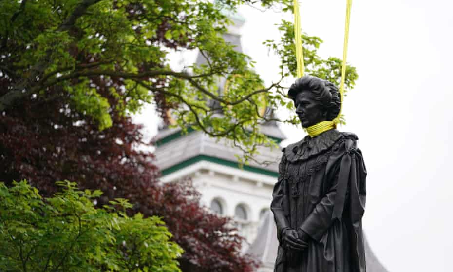 . Conservative leaders hailed it as a fitting tribute to to the first female Prime Minister who grew up in the town. The bronze statue was. Within hours of the monument being erected on Sunday.